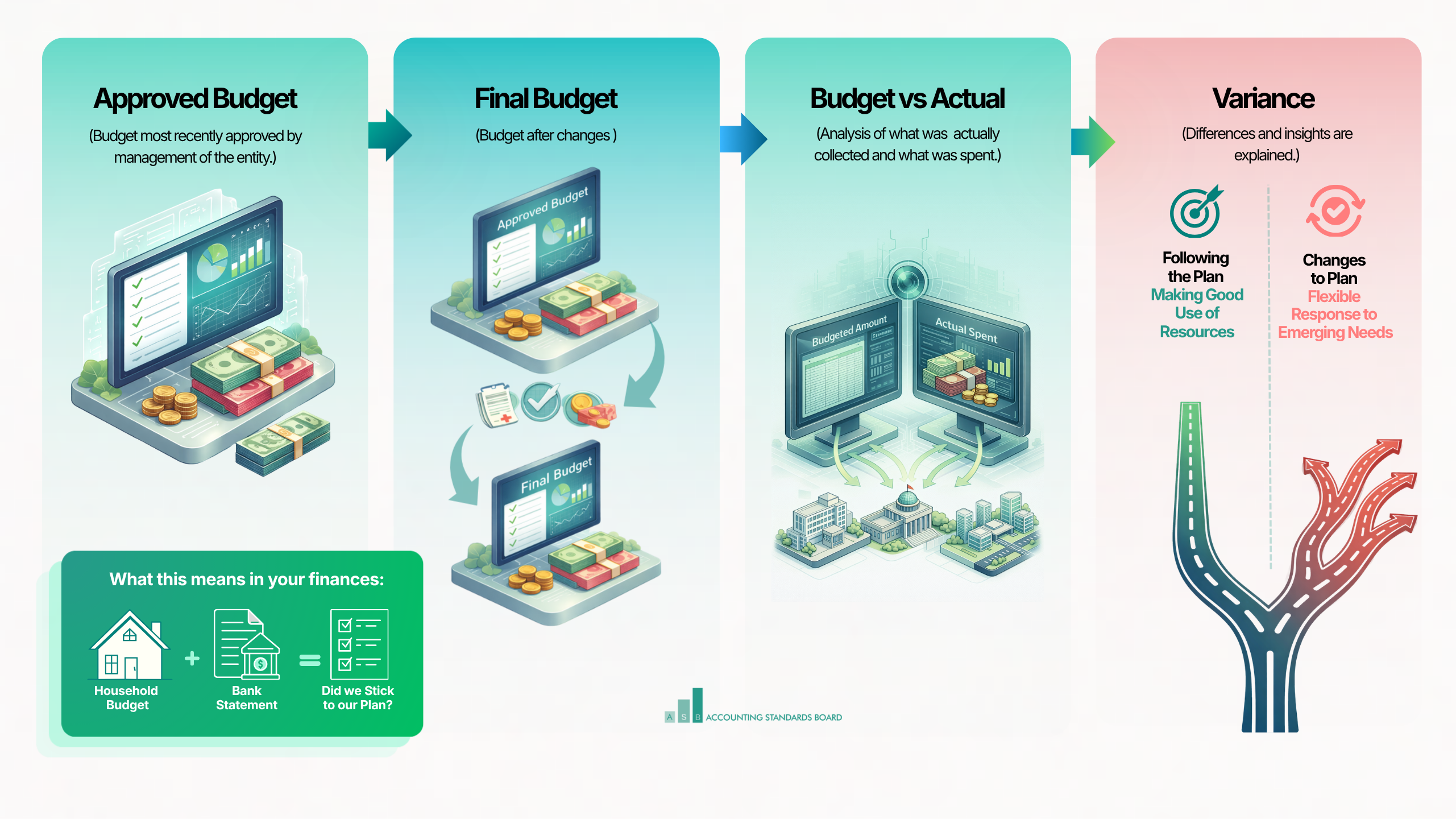 This statement shows how much money the government planned to spend (the budget) against to how much it really spent (the actual results). It helps you see whether they stuck to their budget or if there were big changes to that plan.
